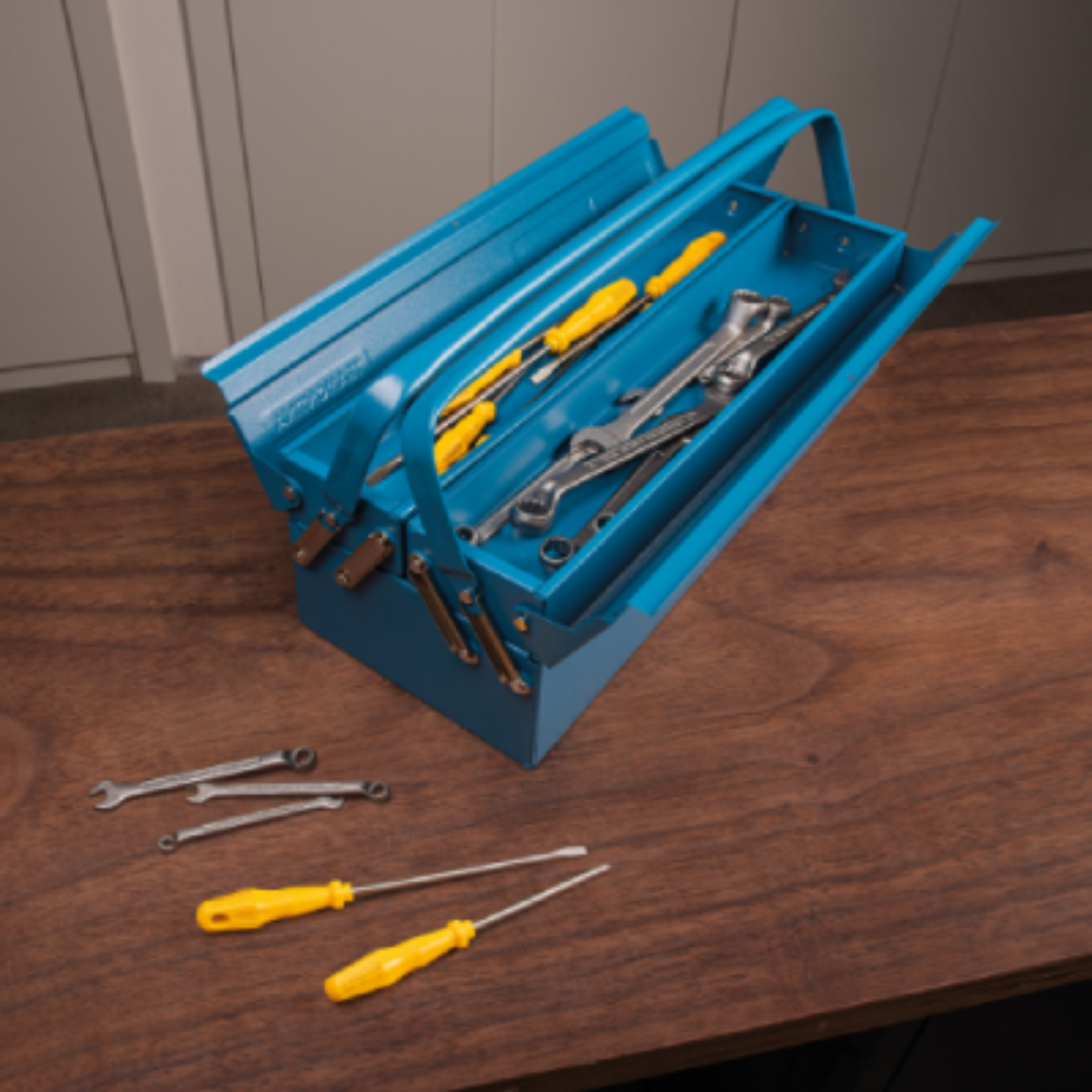 A Caixa Sanfonada para Ferramentas Tramontina MASTER com 3 Gavetas e Alças Fixas facilita a sua rotina de trabalho. Possui pintura eletrostática, garantindo um acabamento excelente e alta resistência à corrosão. Além disso, proporciona o armazenamento e transporte de ferramentas manuais, peças e acessórios.