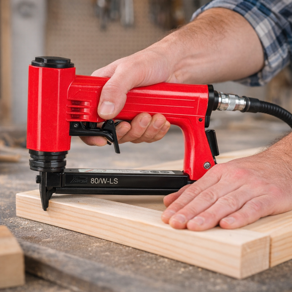 Grampeador pneumático de uso profissional, fabricado no Brasil, projetado para operações contínuas de fixação com alta confiabilidade, precisão e durabilidade. Possui construção robusta, baixo peso e design ergonômico, proporcionando melhor controle, redução de fadiga do operador e maior produtividade em aplicações industriais e semi-industriais.
